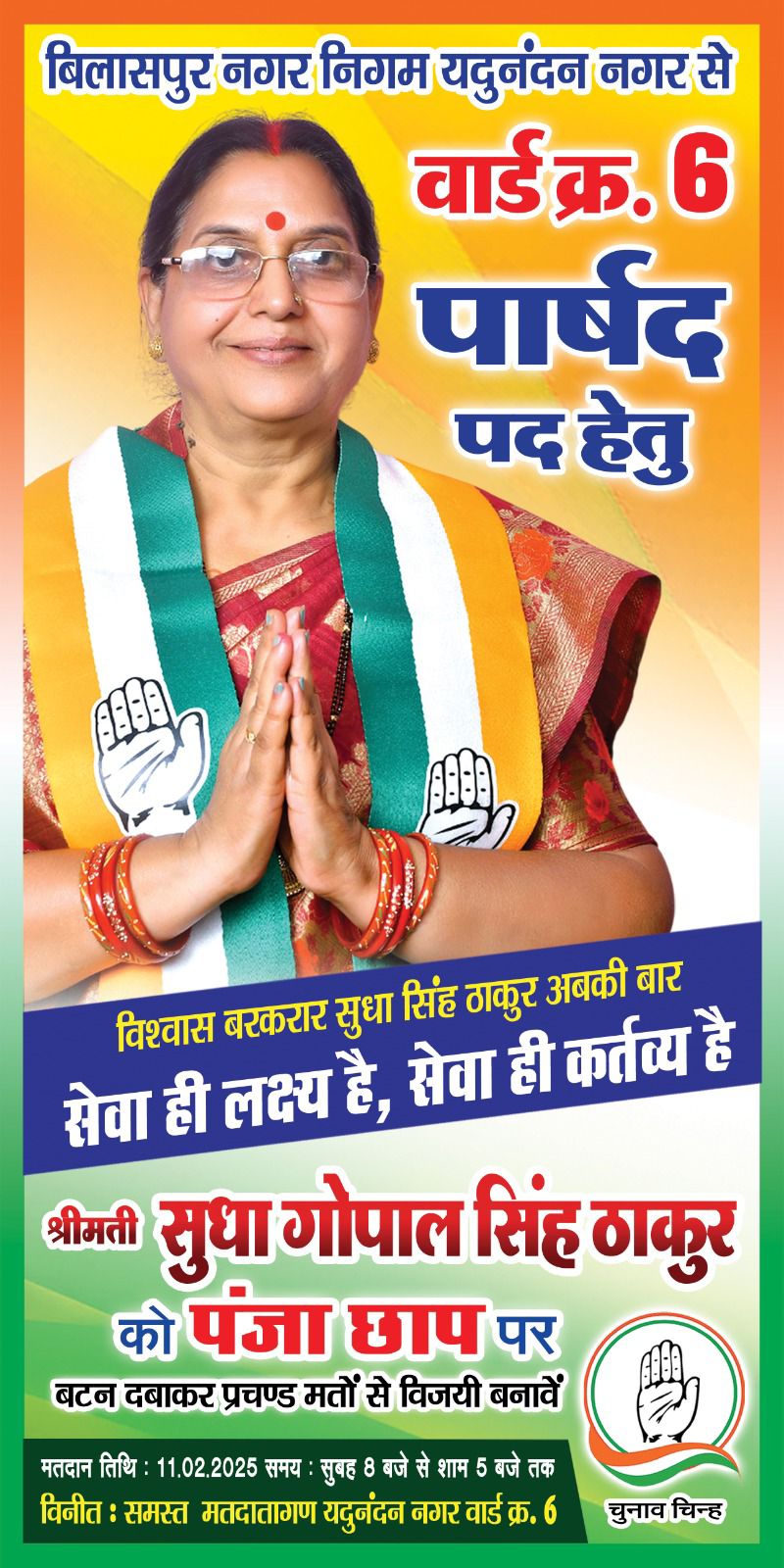बिलासपुर नगर निगम चुनाव : वार्ड क्रमांक 06 कांग्रेस प्रत्याशी सुधा गोपाल ठाकुर के समर्थन मे पहुंचे पूर्व मुख्यमंत्री भूपेश बघेल , जनसम्पर्क मे उमड़ा युवाओं और महिलाओ का जनसैलाब…