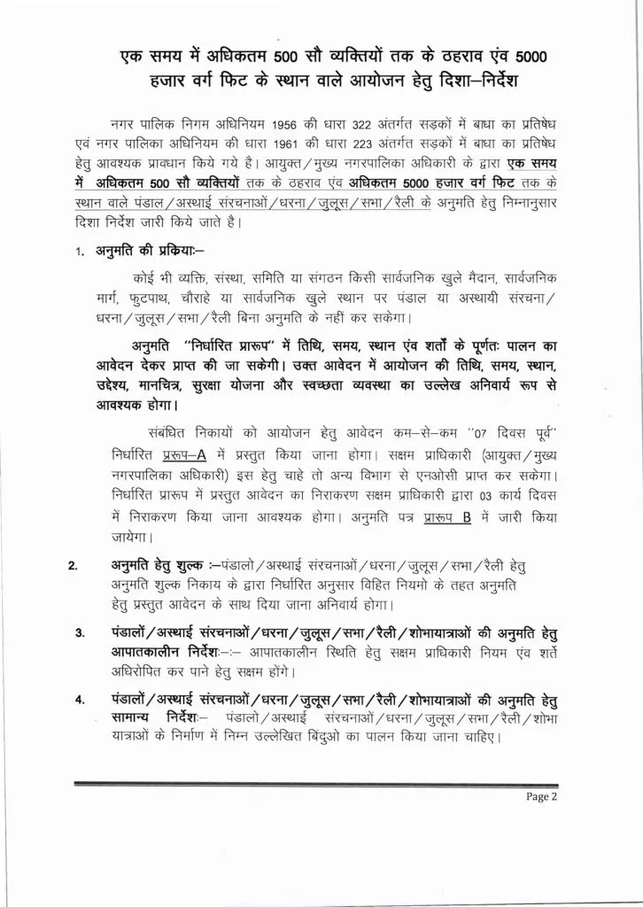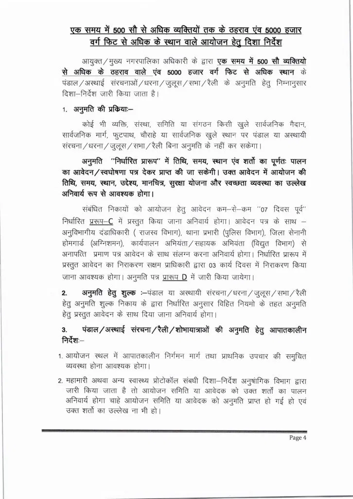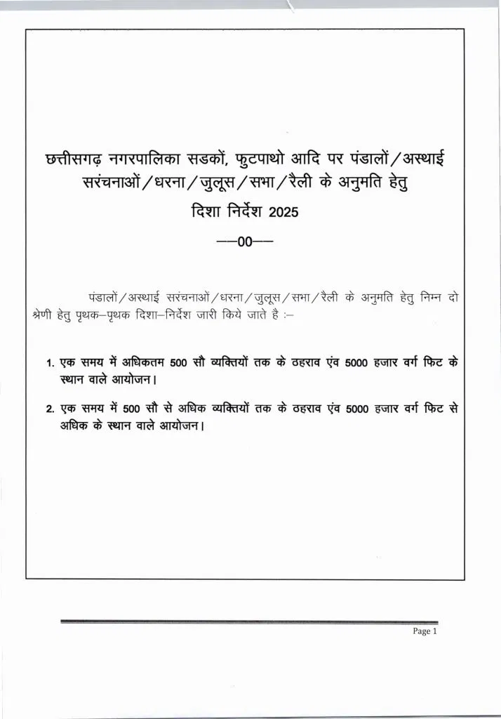 रायपुर। राज्य शासन द्वारा सार्वजनिक छोटे-बड़े कार्यक्रमों के संबंध में दिशा-निर्देश जारी किए गए हैं. आदेश के अनुसार आयोजनों को भीड़ और स्थान के आधार पर दो श्रेणियों में बांटा गया है. छोटे आयोजनों में 500 तक लोग और 5000 वर्ग फीट तक का स्थान शामिल होगा, जबकि बड़े आयोजनों में 500 से अधिक लोगों की भीड़ या 5000 वर्ग फीट से अधिक क्षेत्रफल वाला आयोजन माना जाएगा.