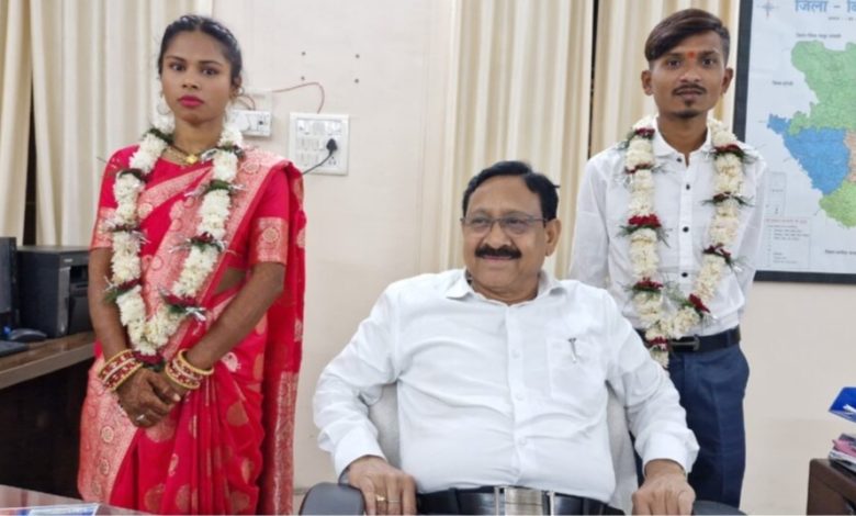 मात्र कुछ मिनटों में दूल्हा और दुल्हन बन जाने के बाद दोनों ने एडीएम आरए कुरूवंशी से चरणस्पर्ष कर आशीर्वाद लिया। दूल्हा रवि देवांगन ने बताया कि वह जूना बिलासपुर का रहने वाला है। उसके पिता का निधन हो चुका है। लेकिन बड़े भाई शनि देवांगन ने कभी भी पिता की कमी को महसूस होने नहीं दिया। घर की आर्थिक स्थिति ठीक नहीं होने के कारण वह शहर के ही एक नामचीन दुकान में काम करने लगा। इसी दौरान उसका परिचय नंदू अहिरवार से हुई। वह भी उसी दुकान में काम करती है..जहां मैं अभी भी कर रहा हूं।