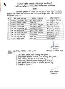 बिलासपुर – प्रशासनिक दृष्टि कोण से अस्थाई तौर पर बिलासपुर पुलिस अधीक्षक ने किया निरीक्षक, उप निरीक्षकों का स्थानांतरण देखिए सूची